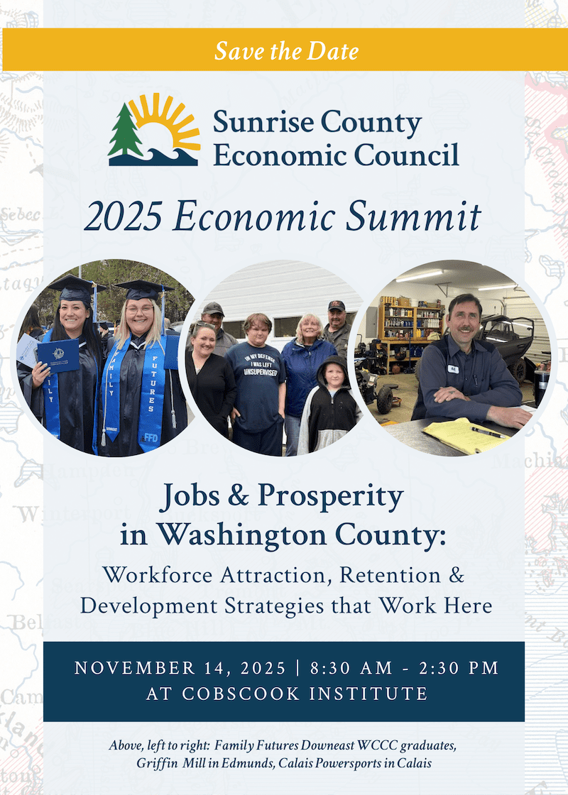 Join us on November 14 from 8:30 am to 2:30 pm at Cobscook Institute for SCEC’s Annual Economic Summit.