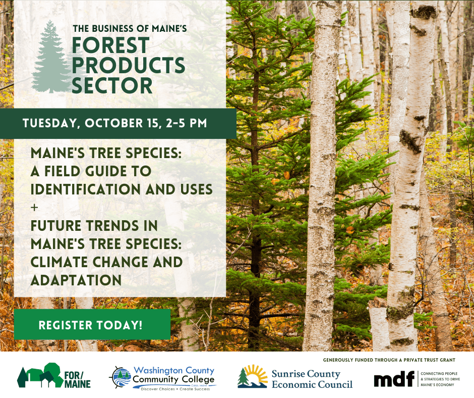 Then, in Future Trends in Maine’s Tree Species: Climate Change and Adaptation, we’ll investigate how climate change impacts Maine’s tree species and how the forest products industry is adapting. We will discuss strategies for sustainable tree management in a changing environment.